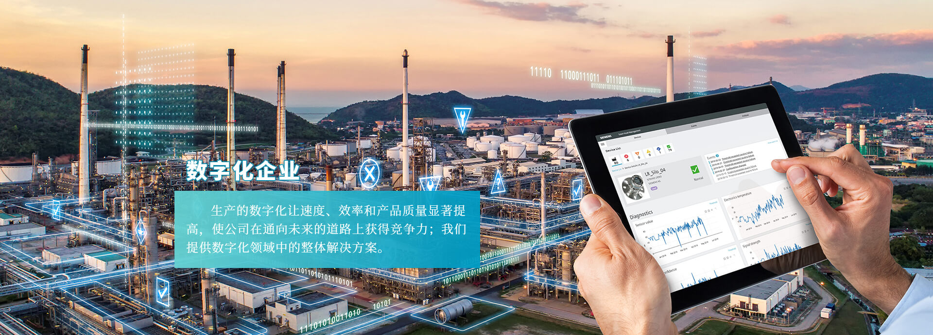 生產(chǎn)的數(shù)字化讓速度、效率和產(chǎn)品質(zhì)量顯著提高,使公司在通向未來(lái)的道路上獲得競(jìng)爭(zhēng)力;我們提供數(shù)字化領(lǐng)域中的整體解決方案。 深入了解